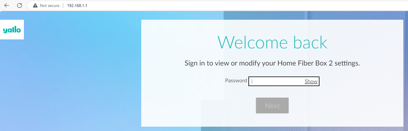 Du musst mit dem yallo-Modem über Wifi oder LAN-Kabel verbunden sein, um auf den Admin-Bereich zugreifen zu können.