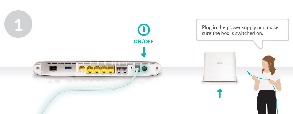 Installiere das Modem (yallo Home Max Fiber Box) mit Hilfe des Quick Starter Guides: Link.