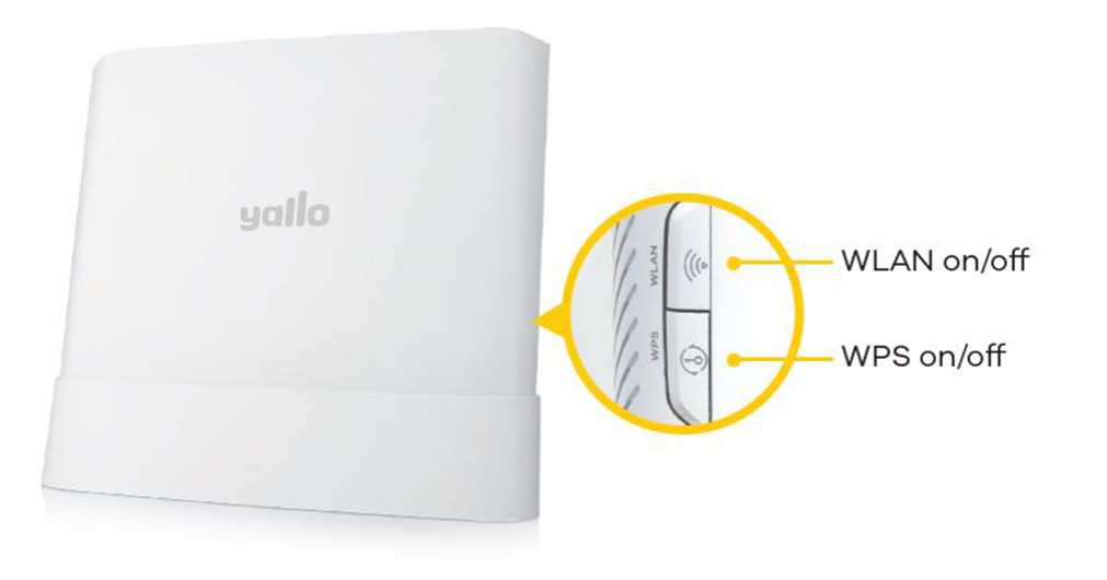 Knöpfe auf der rechten Seite der yallo Home Max Fiber Box: