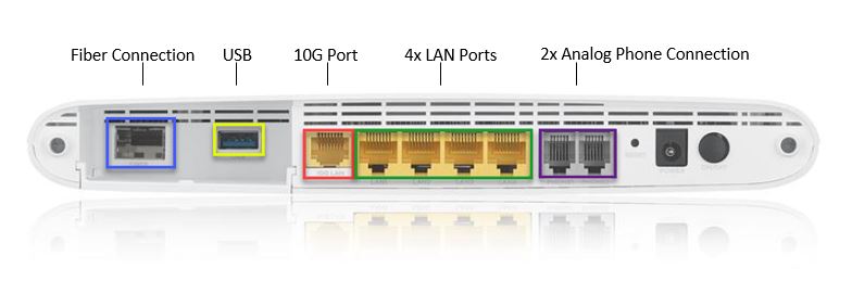 Die yallo Home Max Fiber Box hat folgende Anschlüsse: