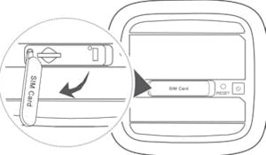 - Fügen Sie die SIM-Karte in die Richtung ein, die in der folgenden Abbildung gezeigt wird, bis sie klickt. Schliessen Sie dann den SIM-Kartenverschluss