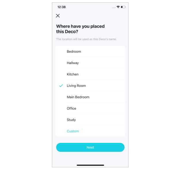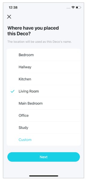 Select or custom a location for your Deco. The location will be used as the name of your Deco. Make sure your Wi-Fi‘s name is not the same as the X60F network.