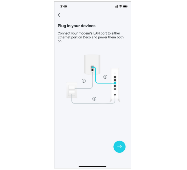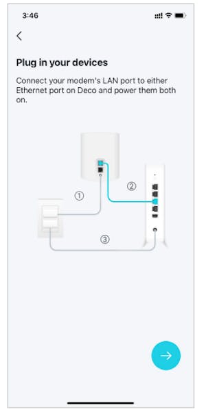 Power off your modem. Connect your Deco to the modem and power them both on. If you don't have a modem, connect your Deco directly to the Ethernet outlet.