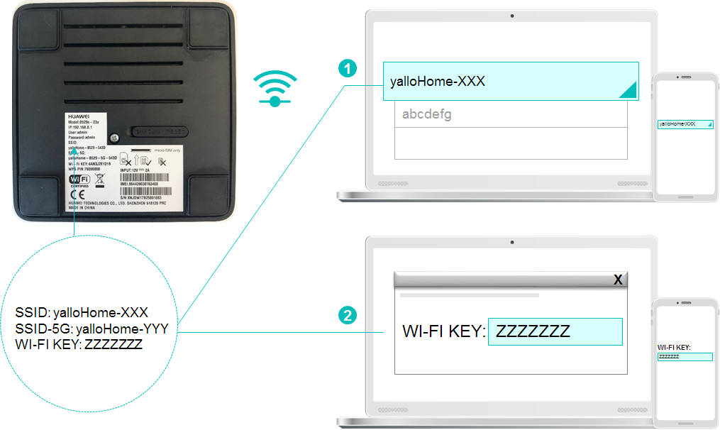 3. Check that the Wi-Fi indicator on the yallo Home Box is on. If not, go to the configuration page of the yallo Home Box and activate Wi-Fi.