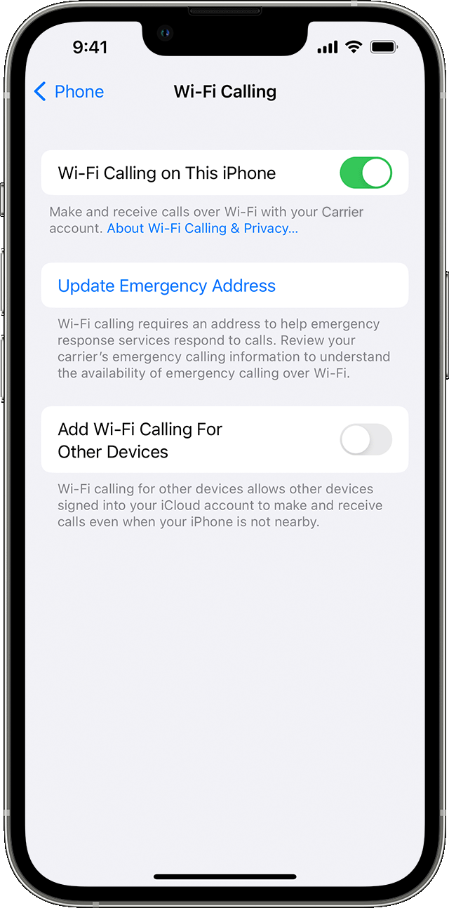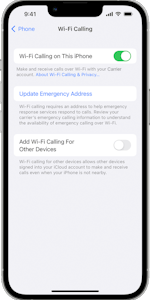 iOS: If Wi-Fi Calling is available, you’ll see "Wi-Fi" in the status bar while viewing Control Center. Then your calls will use Wi-Fi Calling.