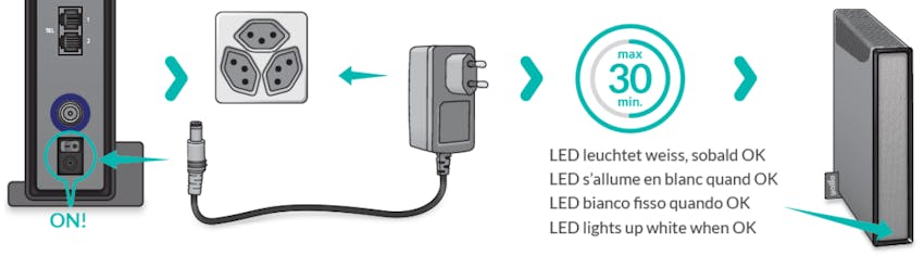 Note: The modem will now automatically connect to the internet. Once the modem is online, the LED will light up white.