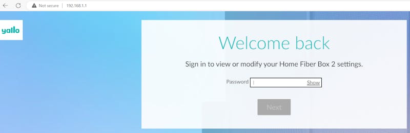 You have to be connected to the yallo modem through wifi or LAN cable to be able to access the Admin area.