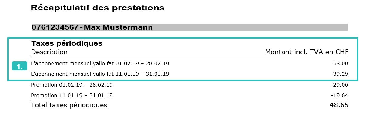 Le montant de ta première facture sera sensiblement plus élevé que d’ordinaire parce qu’il inclut les frais d’abonnement des deux premiers mois (le premier mois calculé en fonction de la date d’activation, le deuxième dans son intégralité). À partir de la deuxième facture, tu retrouveras un montant correspondant à l’abonnement du mois en cours ainsi qu’aux frais d’utilisation du mois précédent. Y figurent également les frais d’activation de ta SIM si tu ne les as pas déjà payés au point de vente.