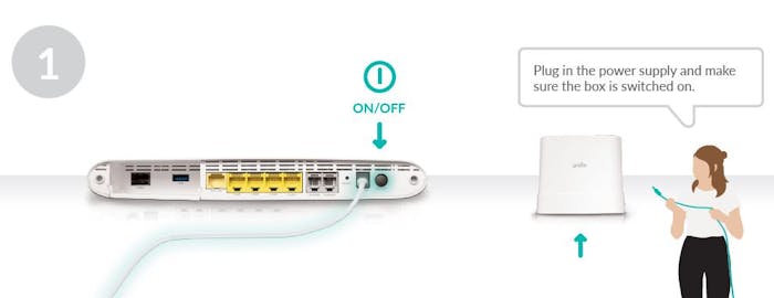 Important: When plugging in the yallo Home Max Fiber Box, please make sure that the cable you plug into the box is pressed in firmly until it makes a "clack". Please do not bend the cable.