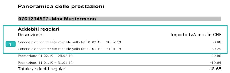 La tua prima fattura ti sarà inviata via e-mail alla fine del mese, dopo che il tuo numero sarà stato attivato nella nostra rete. Le nostre fatture sono inviate di default gratuitamente tramite e-mail. Se desideri una fattura cartacea a pagamento (CHF 4.00), puoi modificare facilmente questa opzione in my yallo alla voce «Fatture e uso».