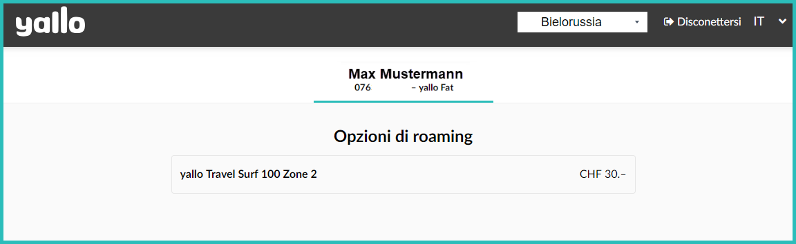 Nel «Roaming Cockpit» puoi visualizzare direttamente le tue impostazioni e ottimizzare il tuo abbonamento con interessanti opzioni aggiuntive per il tuo prossimo viaggio all'estero. Nel «Roaming Cockpit» in my yallo puoi verificare in qualsiasi momento i consumi degli eventuali pacchetti supplementari selezionando il paese di destinazione desiderato. In questo modo potrai visualizzare il tuo credito residuo per ogni pacchetto supplementare acquistato. L'accesso è gratuito in tutto il mondo.