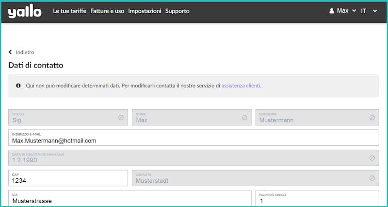 Ricevi le tue fatture all'indirizzo indicato in my yallo alla voce «Dati di contatto». In pochi clic puoi comodamente modificarlo, che tu riceva le fatture via e-mail o per posta. La tua prossima fattura sarà quindi inviata al nuovo indirizzo indicato.