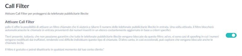 Grazie al blocco delle chiamate, yallo blocca automaticamente le chiamate moleste sulla rete mobile. Funziona per tutti i clienti yallo mobile ed è gratuito. Tutti i numeri che ci sono stati segnalati dalle autorità (ad esempio dal Centro nazionale per la cybersicurezza NCSC della Confederazione) e che sono stati classificati come SPAM vengono bloccati. Si tratta ad es. delle chiamate provenienti dai Call Center che non adempiono all’obbligo di registrazione con asterisco nell’elenco telefonico. È possibile bloccare anche i numeri di telefono che vengono segnalati direttamente a noi o ad altre aziende di telecomunicazioni. Il filtro può essere applicato anche a un singolo numero di telefono che effettua una quantità elevata di chiamate in un arco temporale particolarmente ristretto.
